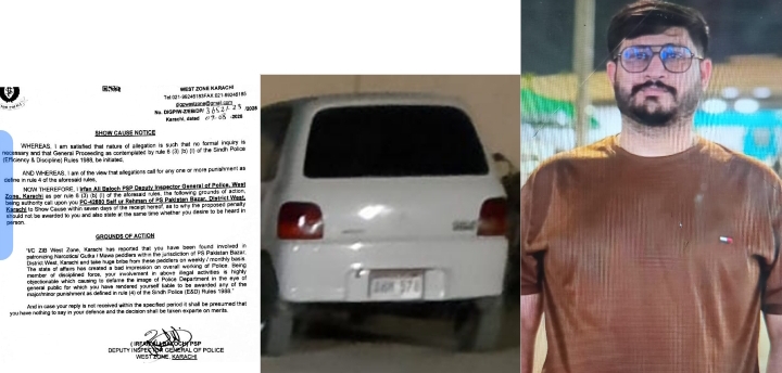 باوثوق ذرائع کے مطابق تھانہ پاکستان بازار کانسٹیبل سیف الرحمان بکل نمبر 24880 اپوائنٹمنٹ 2019 ٹرانسفر تھانہ پاکستان بازار 2022 اور پارٹنر گٹکا ماوا ڈیلر تیمور موٹا کے کنٹرول میں آگیا یہ دونوں افراد اور انکے ساتھی تھانہ پاکستان بازار کی حدود میں پرائیویٹ بیٹر کاکا کے ذریعے تمام کیبنوں پر گٹکا ماوا فروخت کر رہے ہیں، ان غیرقانونی کاموں اور سہولت کاری میں کانسٹیبل سیف الرحمان کے دیگر ساتھیوں میں پی سی عبدالرحمان اور ہیڈ کانسٹیبل علی کوثر شامل ہیں، کانسٹیبل سیف الرحمان تھانہ پاکستان بازار کی حدود سے صرف اپنے 7 لاکھ روپے ہفتہ اٹھاتا ہے، تھانے کے الگ اور نئے ماڈل کی سفید کلر کی آلٹو میں تھانے آتا جاتا ہے، اس کے علاوہ یہ اپنے ساتھیوں کے ساتھ مل کر غیرقانونی طور پر تھانہ پاکستان بازار کی حدود سے بندے اٹھاتا اور ان سے بھاری رقم وصول کر کے انہیں چھوڑ دیتا ہے، ذرائع نے یہ بھی بتایا کہ کانسٹیبل سیف الرحمن ایس ایچ او کا خاص بندہ ہے جو ہر تھانے میں اس کے ساتھ ہوتا ہے۔ حال ہی میں ایس ایچ او تھانہ پاکستان بازار نے کانسٹیبل سیف الرحمن کے کہنے پر 9 سپاہی کا ٹرانسفر دوسرے تھانوں اور ہیڈکواٹر کیا، ان تمام حالات کے پیش نظر کانسٹیبل سیف الرحمان اور ان کے ساتھیوں کی انٹیلیجنس رپورٹ آئی جی سندھ، ایڈیشنل آئی جی کراچی کو موصول ہوئی جس پر انہوں نے ڈی آئی جی ویسٹ زون کو فوری ایکشن لینے کی ہدایت کی جس پر ڈی آئی جی ویسٹ زون نے کانسٹیبل سیف الرحمن کو 9-8-2025 کو شوکاز نوٹس جاری کردیا، شوکاز نوٹس نمبر 2025-23-36521، پر اب تک تھانہ پاکستان بازار کانسٹیبل سیف الرحمان کی جانب سے جواب جمع نہیں کروایا گیا۔